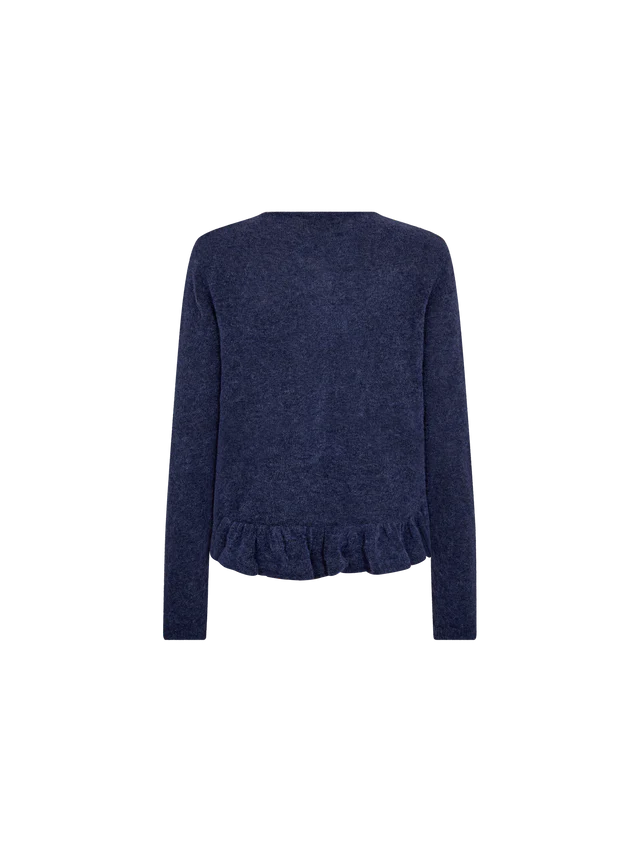 Elevate your everyday wardrobe with the Maple Alice Knit Cardigan in Crown Blue. Crafted from a luxurious wool blend, this sophisticated piece features long sleeves, smooth button fastening, and charming frill detailing at the hem that adds instant character. The thoughtfully tailored silhouette flatters your figure while the rich blue tone complements any outfit. Whether layered over a dress or paired with your favourite jeans, this versatile cardigan brings warmth, texture, and timeless elegance to your daily style.