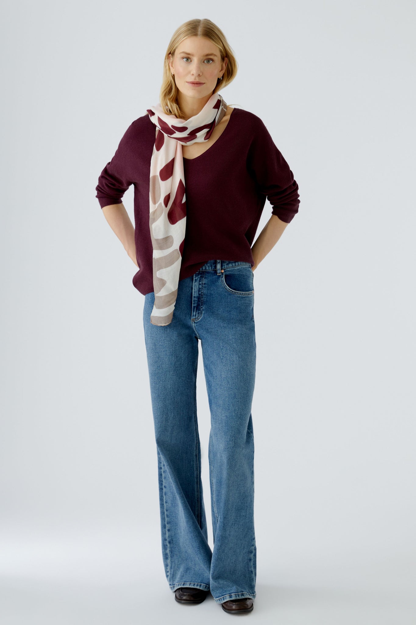 This elegant rose red shawl is made from pure viscose, offering a smooth and lightweight feel. Its large square shape allows versatile styling. The four-color placed print adds a refined visual appeal, while carefully hemmed edges ensure a polished finish.
