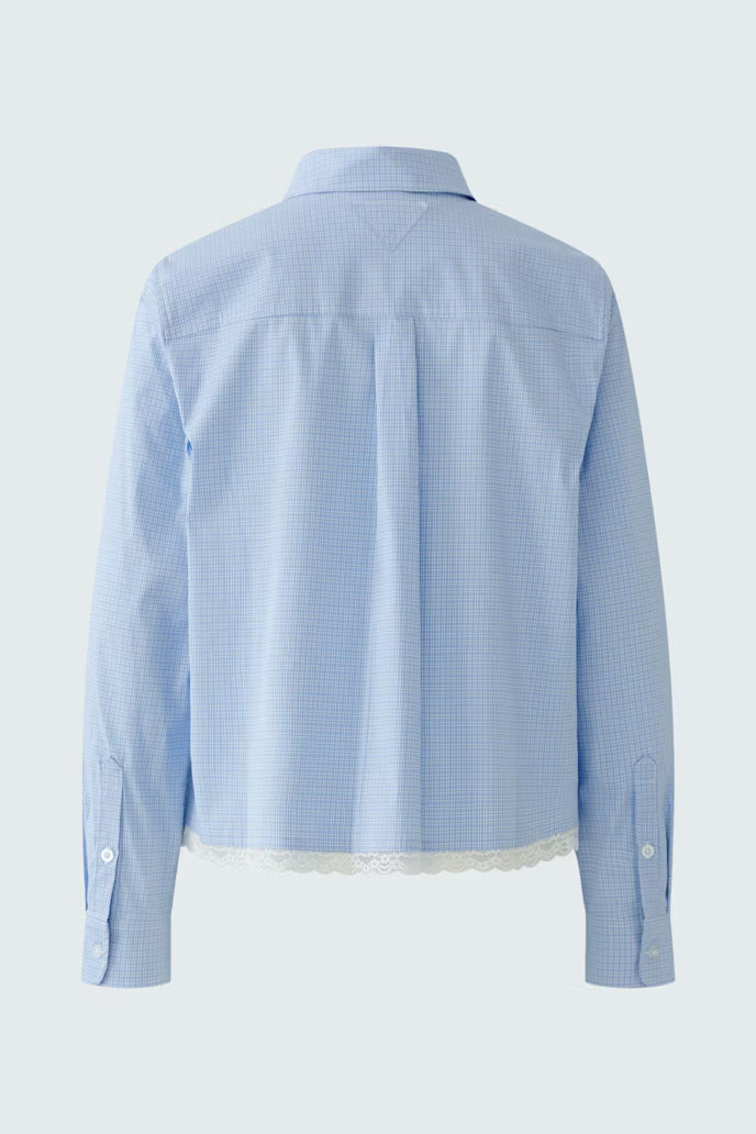 Elevate your everyday wardrobe with this refined striped shirt, crafted from a premium elastic cotton blend that moves with you throughout the day. The fine woven checks create subtle visual interest, while the shortened straight cut offers a modern, flattering silhouette perfect for tucking or wearing loose. Featuring a classic shirt collar, full-length button placket, and long sleeves with functional cuff closures, this piece seamlessly transitions from office to weekend.
